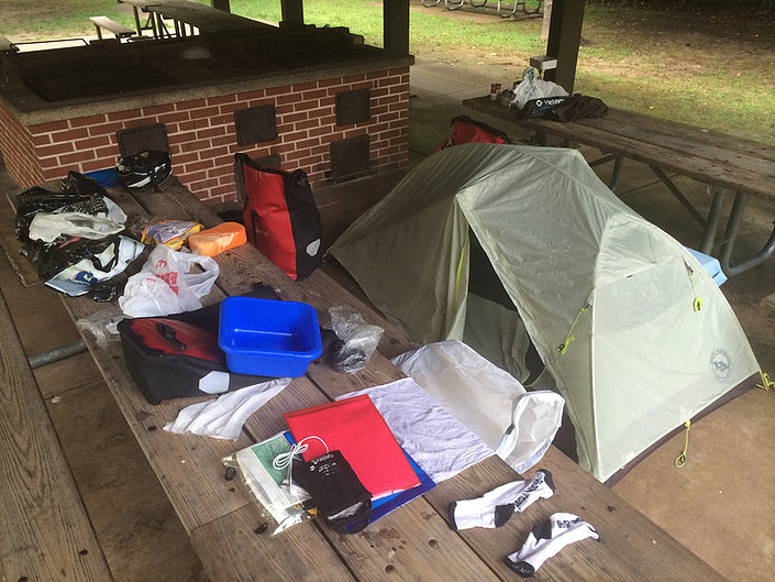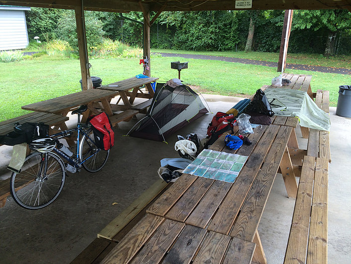 So I then cycled/swam to Troutville and in a torrential downpour managed to call and arranged sleeping in their park under shelter and using the Fire Station to clean up. This then also meant furiously attempting to dry everything out.