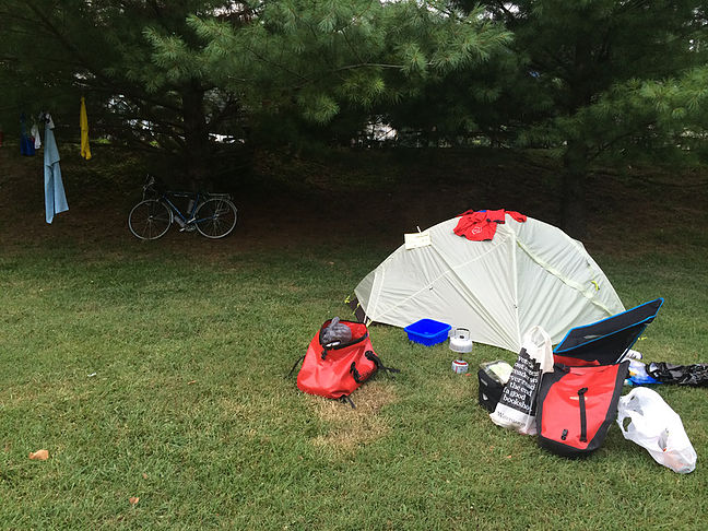 So I trundled on past the battlefields and then decided that I would get to Ashland to camp. It’s here in the tent at before 6am I pen this. As with many camps that are really for RV’s they are close to a noisy highway (and now a fire truck siren!) I met my first other Trans Am’er today – Jack. He’s cycling back to California and he tells me there will be no snow in Colorado. Top man.