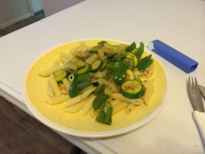 Much to the hotel management horror I made my pasta and fried my vegetables behind the hotel, where the smokers are usually despatched. I just needed something plain, without cheese in it, that has been placed before me after a brief sojourn in a microwave.