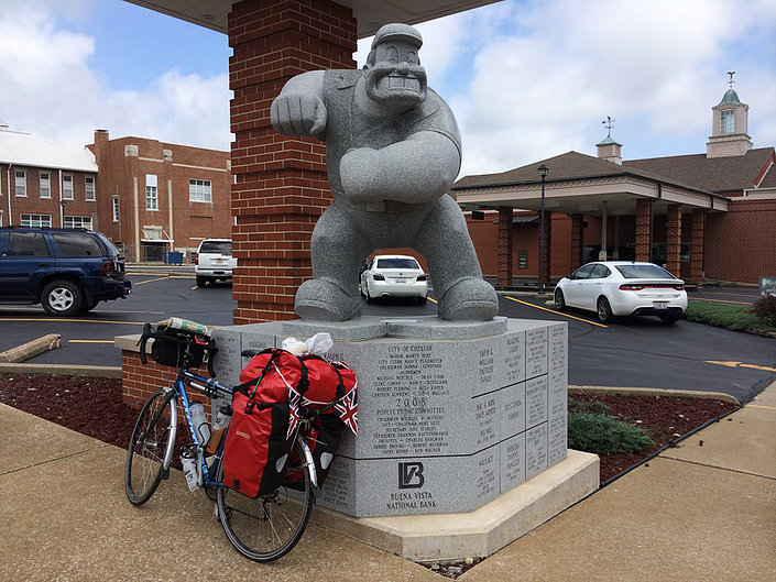 Firstly, as regards the last post, I got it wrong and it is Widow Twanky not Madame. This correction came to me as I stared at the tarmac on yet another of Missouri’s merciless climbs.
