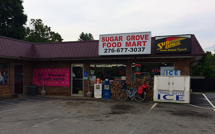 Larry, was an unkempt older chap (nearer 80 than 70) who was sat outside his motel room at 6am drinking a coffee. He’s admiring the bike and the Union Jack flags. He approaches me as I complete the loading and asks about where I am from. From here, as the Americans can do, he starts to tell me about two British hitch hikers he let use his camper van back at his home on the Kentucky border. Larry descibes himself as a ‘hill billy’…there are no grounds to disagree. He’s interested to know about my logistics and more. Virginians are quite slow speaking and often at pains to be courteous, I can only but be patient and listen even though with so much climbing today, in such heat, I am desperate to be off.