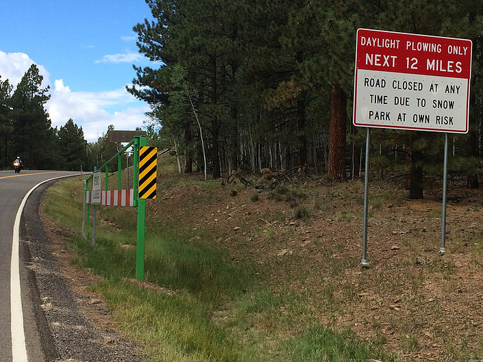 In the last two hours before I reached the summit or frankly the plateau I had only covered 9.5 miles. The gradient had touched 8% but generally it was a lot less than this. It was a 45 mile hill climb with no respite. Over 6.5 hours is a long continuous bike ride before stopping. This came about when I found a diner in Silver Cliff. I entered this empty hostelry wet through and frozen. With altitude comes different climates and at a further 1,000 metres up I found heavy cold rain and 10ºC. What a contrast! Sherri, when asked if the rain would stop did suggest that the forecasters were saying Friday, I was hoping for 3.30pm today!