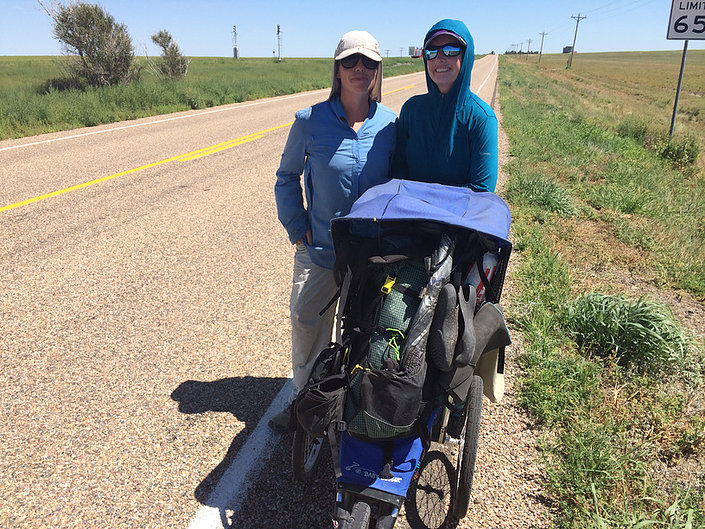 The ride into Sheridan Lake is routine in the now developing heat when I pass two girls pushing a pushchair (with their worldy possessions in it). Christy and April have been on the road since late March walking across the USA. As all travellers seem like lost waifs I give them a bag of almonds and a Snicker bar to worrying gratitude and continue to my church for the night.