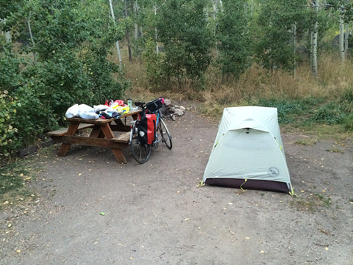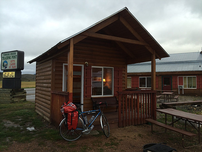 Talking of which, after leaving Westcliffe I was descending and the temperature rose and the rain stopped. Descents are tremendous but every cyclist knows that what goes down inevitably goes up. My map indicated camping at Cotopaxi (a name for a volcano) and after over 8½ hours I found the site. The site is run by KOA (Kamps of America). The pitch cost just under $30. A lot for a piece of fine gravel, a bench (in the drizzle), a shower and one hour of wi-fi. I saw this coming as they are known to be expensive and don’t have a pricing policy for solo travellers or cyclists. Out here I had no options. However there is always Tripadvisor to express an opinion!