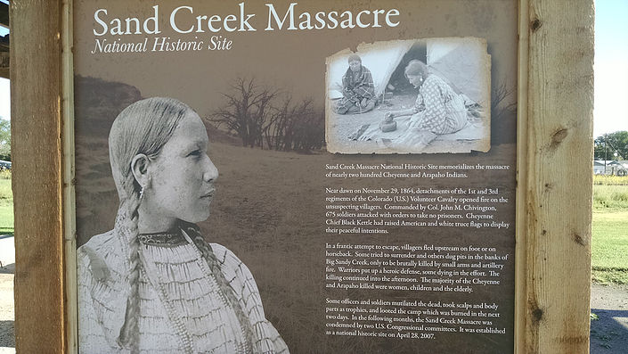 At Sand Creek in 1864 675 American (Coloradan) troops slaughtered a large number of Cherokee and Arapahos Indians (around 150) mostly women, children, old and young males. The Indian older males had mainly been absent hunting bison. The Indians under various agreements and flying the US flag were meant to be safe. The slaughter didn’t just mean being killed but many Indians were scalped and mutilated. There were subsequent investigations and hence the suffix of ‘massacre’ rather than battle. No one was fooled about the murder.