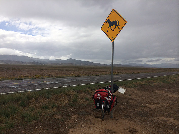 Nevada has come at a time when I have climbed mountains, ridden in ‘furnace’ heat and perishing cold, done over a 100 miles in a day several times and toughed it out with showers attached to climbing frames or eaten rubbish food because that is all the gas station had in seven previous States. Nevada is tough and I must admit clearing the Sierra Nevada and cruising down to the coast is now on my mind and a reward for my ‘heavy lifting’.