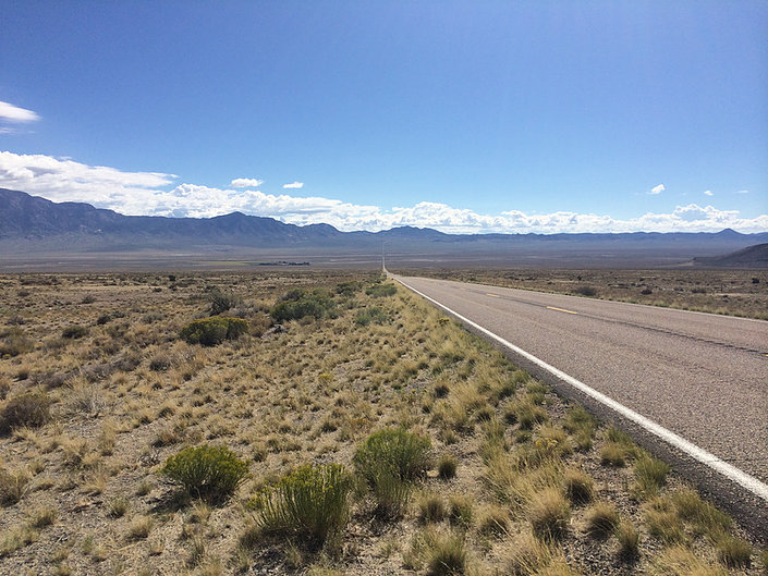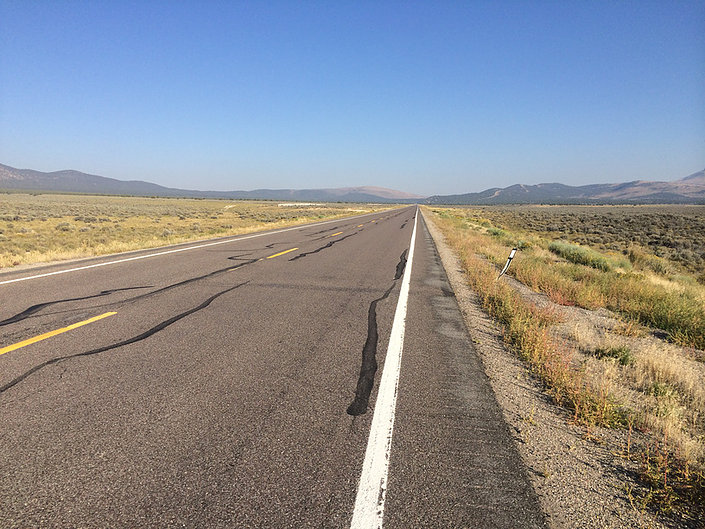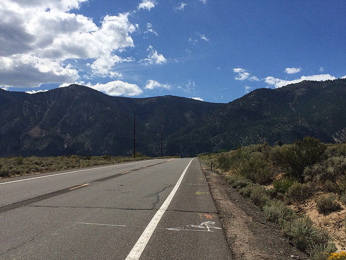 He knew an excellent diner and led me there before setting off with Sarah ahead of me. I partook in an exceptional guzzle and then departed. The map had warned that there were no services between Milford and the next settlement, Baker; this was 84 miles.