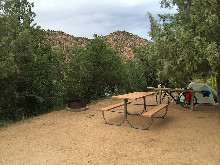 The cycling distances are determined by the distances between settlements. There are odd campsites before or between the settlements but ‘primitive’ is the description and they probably don’t have running water. In reality they are a ‘pull in’ for an RV or caravan. Quite a number of cyclists are happy to wild camp but it means having surplus water, to cycling, with you and of course no other facilities. I would have made a very poor pioneer explorer or Native American!