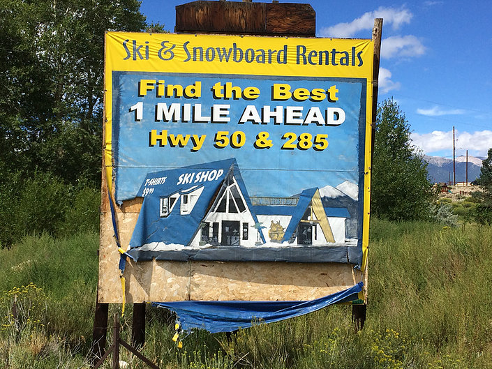 Off the mountain came a hard wind. I think the afternoon heat had generated this. I went up and down until I reached Genoa. This looked quite twee with Sunday tourists. Pushing through I eventually left the foothills and started to climb. By tomorrow I had to reach 8,500 feet and here I was at 4,000 feet. As I started on the ascent I bagged my last State – California. I had expected the State sign to be neon and about 20 foot square. In fact I got something akin to a sign that you might get in the UK indicating a footpath.