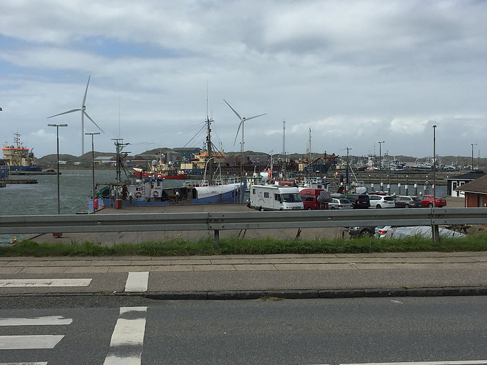 Halfway across was a town called Hvide Sande that was a harbour as well as inlet onto the Fjord. It was a mixture of resort and working harbour with some small tug size ships that probably worked offshore. I stopped here for some lunch and mingled with the holiday makers.