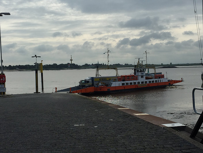 The ambition for the day was to reach Bremerhaven. To get there I would have to cross the estuary of the Esser. Here I would stay in a hotel and drink copious quantities of German beer whilst feasting on schwein knuckle. The crossing was not possible by bridge but necessitated me to catch a ferry at the top of the estuary on the coast. I know this because the map said so. I mentioned earlier that if things don’t work out at the intended destination then you may have cycled for hours and done many surplus miles. Well…. I have to say that the signs I saw as I cycled up the estuary did suggest trouble ahead (see below). However, it wasn’t until after I stopped at a bus depot where I accosted some mechanics who with immaculate English said the ferry was ‘kaput’. So what do you do at 6.30 pm at night without a campsite or hotel nearby? I held hopes that back down the estuary toward Bremen there may be a ferry or bridge and so I cycled back through the mazy countryside, occasionally glimpsing the estuary but feeling I was getting more lost.