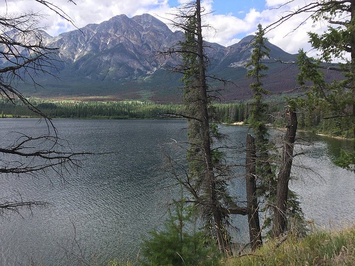 Rain greeted our residual drive to Jasper. The first thing you feel is the deep local welcome when you get there: from Australia. There appears to be an acute shortage of bar staff and shop assistants throughout the Rockies. Australia (and New Zealand) has stepped into the breach. Many of these millennials have been here for some time. We talked with a few, usually the opening line was, ‘you’re a long way from home?’ Many had come and stayed. Given the flight time and cost to the Antipodes I can see how they had ended up residents. By way of variation the present Mrs Ives had booked us into a log cabin on the banks of Lake Patricia.