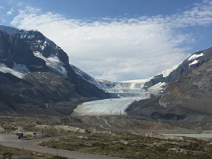 The Icefields Parkway is the 180 mile stretch of road that takes you south in a long valley. Either side are lakes, glaciers and creeks can be found often with bus loads of other tourists.