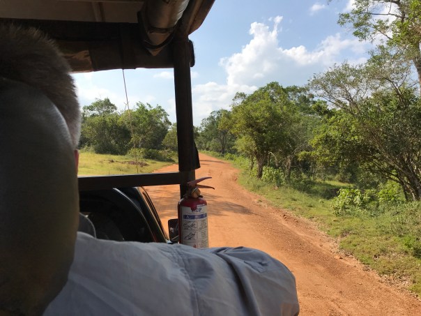 The Park is the largest and oldest in Sri Lanka and it generates tourist revenue. Anna loved all this but as we circled for seemingly hours attempting to spot a leopard I did reflect on the fact that there are a lot of leopards in zoos you could see. We did eventually find a leopard. Apparently most tours don’t see one – along with a sloth bear and elephants; so we’re lucky. All my photos were average but Ching (the Chinese American) had brought a camera with sufficient long lenses (to photo his native New York from the truck) and captured a staggering head shot of the leopard along with other astonishing clear close ups of birds and mammals we saw. He photos them on a RAW file format and later adjusts them on Photoshop: he knows what he’s doing as he’s talented and he does this sort of thing for a living. I’m sorry but my iPhone picture of the leopard’s butt is not worth uploading.