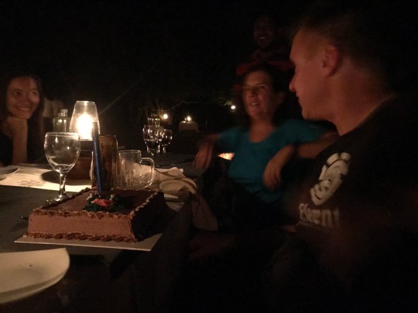 We ate outside under the stars and the tour guide organised a cake for birthday boy Craig. He’s a software guy from North Sydney who’s last holiday was in Cambodia. He grumbled as we sang ‘Happy Birthday’ and chuntered about not celebrating birthdays anymore. Anyway we enjoyed the chocolate cake.