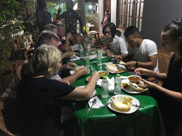 In the evening, when actually hungry this time, we slipped across road from the hotel to a roadside cafe. It was a vet ‘local’ haunt with a corrugated metal roof, trestle tables with plastic table cloths and plastic patio chairs. This is where the chef cooks in his open air kitchen beside the tables creating his dishes to the sound of chopping, scraping and frying. All of this smelt divine. Sat here loads of food arrived including dahls, hoppers (like a pancake), kottus and fried rice. We washed it down with some soft drinks and yoghurt to finish. Needless to say the costs was really negligible – a quarter of last night.