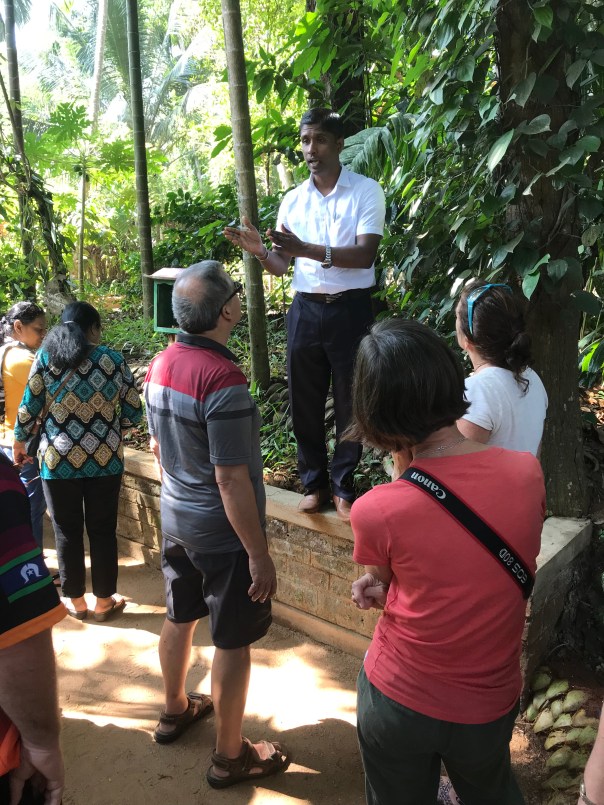 Getting back on board it was a short ride to learn about the medicinal uses of the various plants and trees that grew in Sri Lanka. The list included nutmeg, turmeric, cloves, pineapple, arnica, vanilla, ginger, aloe vera etc. In fact I stopped writing them down. Treatments, prevention, control of and cures extended to cancer, diabetes, cholesterol, hair lustre, arthritis, thrombosis and many others. Sadly I noted none for baldness…