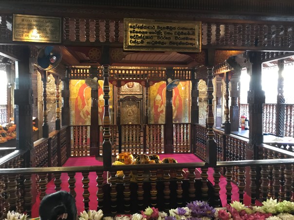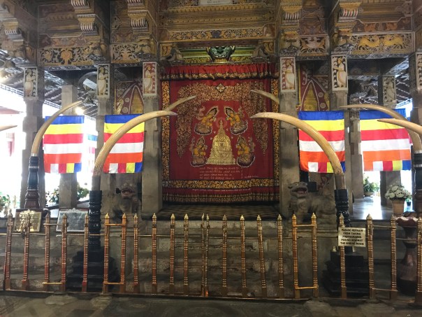 The tooth is under lock and key and we didn’t see it. It is always held by the highest in the land, whether that is the king or now the President. We Brits held it (appropriated) after our occupation yet ‘kindly’ gave it back in 1857. This return is shown in a picture in the Temple. More recently the Temple was bombed in the late 90s by the Tamil Tigers killing 16, including the bombers. This is not the first bombing. The damage has been repaired.