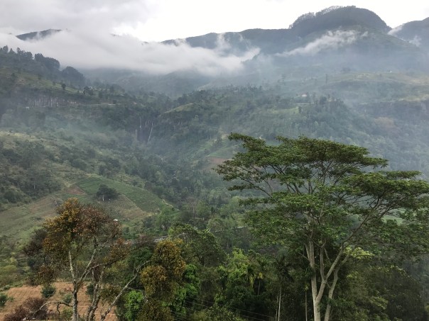 Kandy was a busy and noisy place: there were no regrets about our leaving and We started a long slow climb south. The roads outside Colombo were motorway standard for a short distance before becoming single lane. Despite being single lane they got progressively easier as the traffic lightened until we got to Kandy. After Kandy we had a long series of hairpins for 50 miles and 1,300 metres of climbing to Nuwara Eliya. At 1,860 metres high we climbed well into the mountains and into the rain!