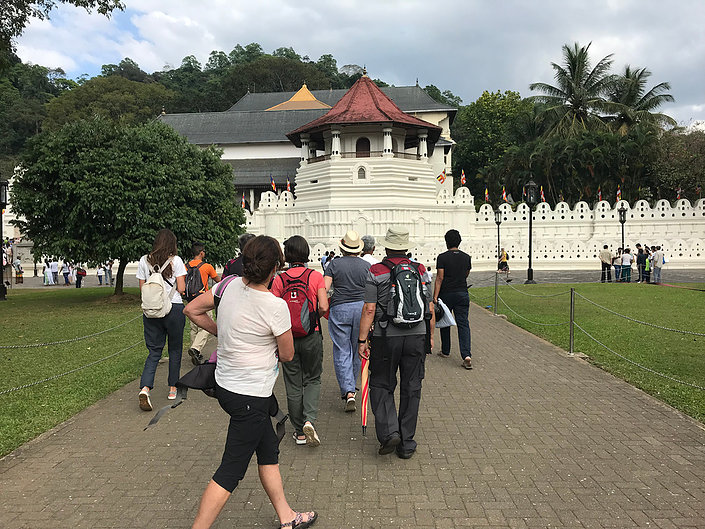 We get these facts and commentaries from Pabash as we drive along. (It is beyond doubt that his thought for the programme and care for each member of the party is immense). Today we were off to Kandy and it was our usual brisk morning start. The first stop was wood carving. We had the local species of wood explained to us and their uses. I asked if any of these wood species were protected by environmental legislation? I was told that they replant to compensate for the depletion. However, how long does it take to grow an ebony tree? I’m not convinced there is serious protection of these scarce resources. This solution seems ineffective if even true. All the wood working and painting was top class.