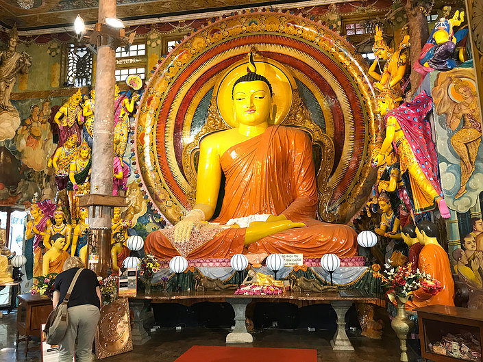 Our tour guide driver steered his weapon into the traffic and whilst ensconced in the back it was like being in a Play Station game with sensory overload – lurching, sudden braking, continual horns, fumes, incredible heat and a vista that sped past. He took us around a number of religious buildings. Always informed, cheerful and with great English. Before returning to Sri Lanka he’d had a stint in Qatar working in security at a mall. The city seemed a lot of ‘old’ slowly being overtaken by new buildings and roads. There is a rich cultural heritage with occupation by the Portuguese, then the Dutch and finally the British from the early 1800s until independence in 1948.