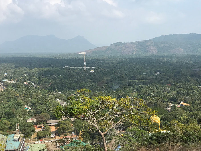 Again more food, quite delicious and lots of it. Buffets are always fatal in that you can have seconds. I say fatal because a piece of grilled fish stuck in Anna’s throat and it took a bit of thumping on the back from Karl to displace the offending animal. Next we drove to Dambulla and a visit to the Golden Temple. The terrain is now becoming a bit more hilly and this temple (a historic rather than active place) is reached by a long walk uphill. A feature are the caves where there are many Buddha statues and paintings. In the scheme of things then most of these monuments were built by kings all the way back to the beginning of the first millennium. They seem to have had long periods of disuse, probably during the British colonial rule.