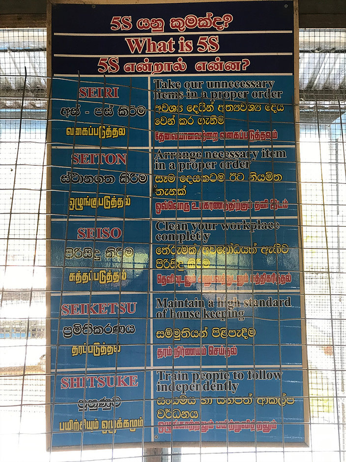The above poster caught my eye. ’5S’ is widely used in European and North American factories and offices as part of a lean thinking approach to using your work environment. The objective is to improve quality and reduce waste. It’s Japanese in origin. The work place was very clean and tidy and so they obviously ‘walk the talk’.