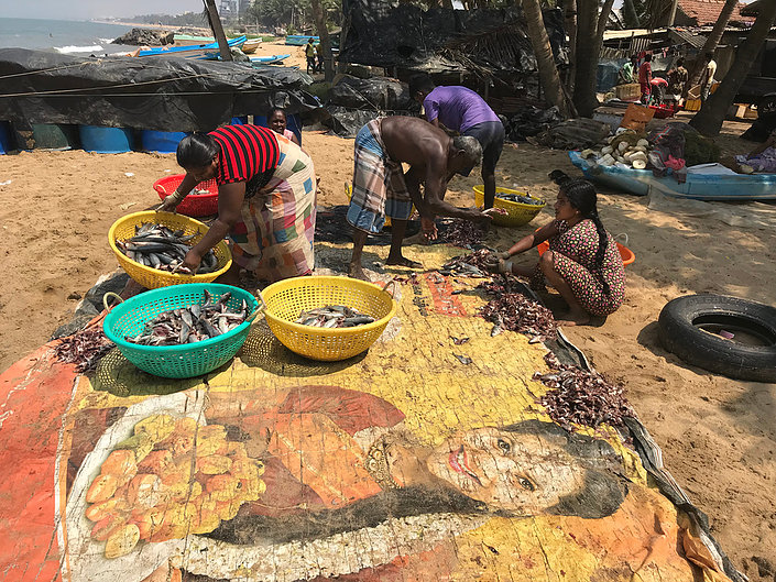 This was found amongst the fishermen on the shore mending their nets or sorting their catches. Why not pick it all up? I’m assuming that there is an agency that would carry the detritus if it were all bagged up and ready to collect.