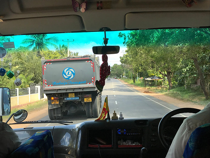 It was the final bus ride as we headed south to the coast. We had lunch in Matara which is about as south as you can get on the island. The reason for this direction was to pick up a motorway back up to the suburbs of Colombo and Negombo. The speed of the motorway was worth this ‘long way round’ rather than a twisty urban route. As we’re zooming along there a pop and a bit of a shake. The rear offside tyre had punctured.
