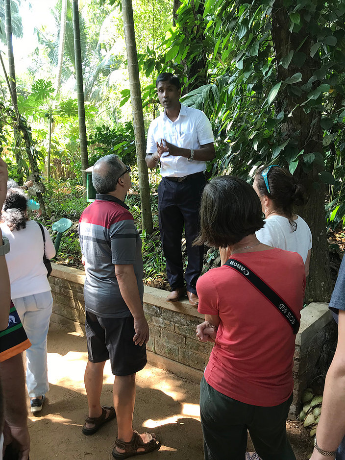 Getting back on board it was a short ride to learn about the medicinal uses of the various plants and trees that grew in Sri Lanka. The list included nutmeg, turmeric, cloves, pineapple, arnica, vanilla, ginger, aloe vera etc. In fact I stopped writing them down. Treatments, prevention, control of and cures extended to cancer, diabetes, cholesterol, hair lustre, arthritis, thrombosis and many others. Sadly I noted none for baldness…
