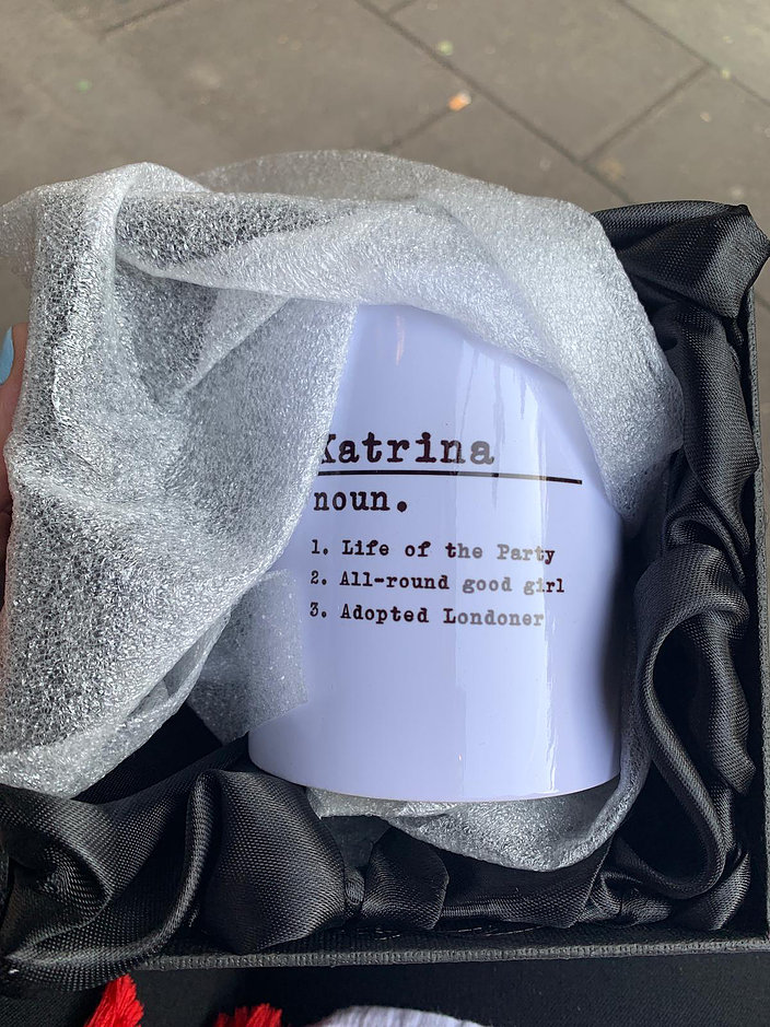 As a parent you have a lot of confidence in your children but what are they like at work? It seems Katrina with her intellect, values and personality won them over in her two years and ran quite a tight yet fair ship. HR is a complicated matter with many legal pitfalls if handled badly. You cannot cut corners and she needed to shepherd those she worked with to go about all these matters properly. Her resignation drew great dismay. A collection was made and turned up in the form of vouchers – a depot, the management and HR group colleagues stumped up £260! How wonderful and touching. Below is a mug she got and the presentation pack for one of the vouchers.