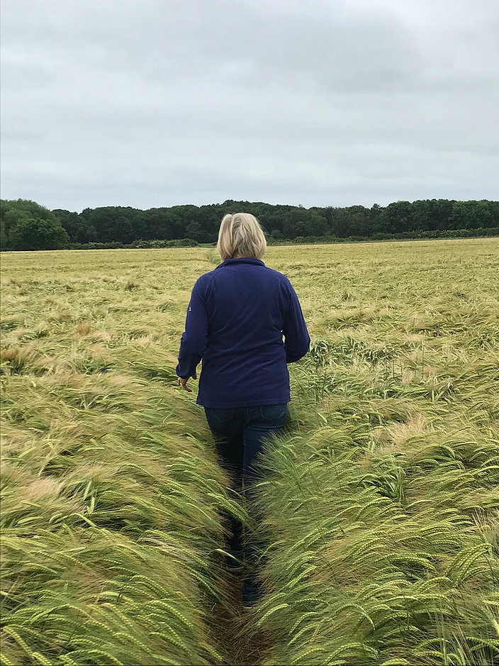 You can see below Anna doing her impression of Theresa May (albeit keeping to the path between the barley) and despite my advanced years I learned that broad beans have flowers! You need not worry that this blog is about to turn into nature watch.