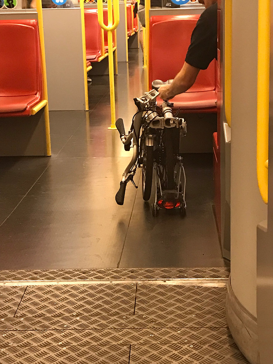 The sight of a London made Brompton folding bike is always heartening. They are enormously popular throughout Europe. A great British manufacturing success.
