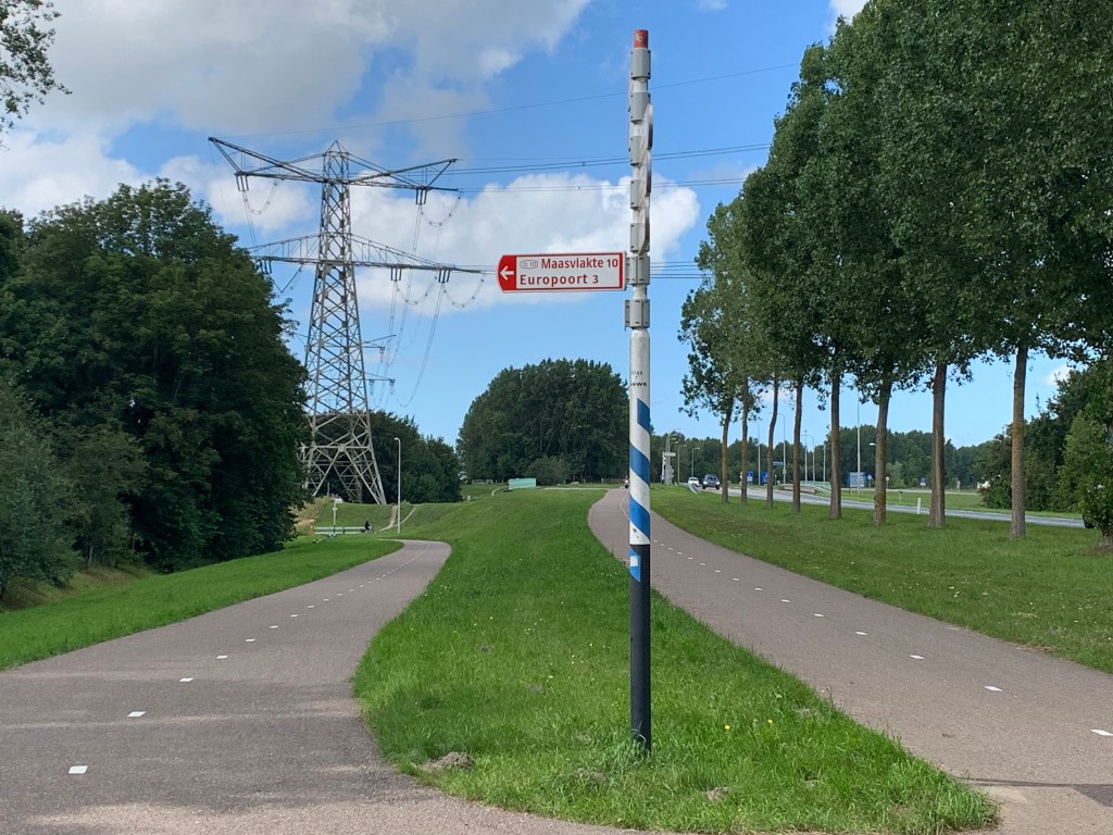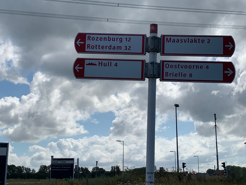 The final few miles were slightly worrying because the route to Europoort meant crossing stretches of water from peninsula to peninsula. I found the following sign and started to be encouraged that I was going in the right direction.