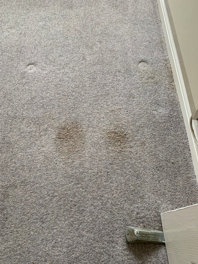 After the departure of the last tenants our inspection revealed they had irretrievably damaged the carpets we installed only 20 months before. There were seven such separate marks and were impossible to remove (as I think the food was oily, which doesn’t work well with a wool carpet.)