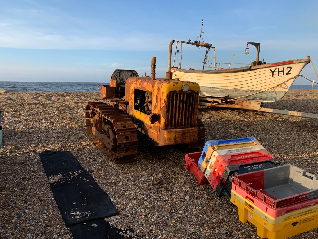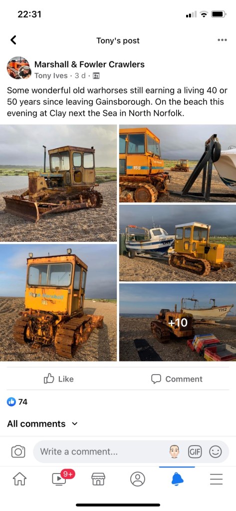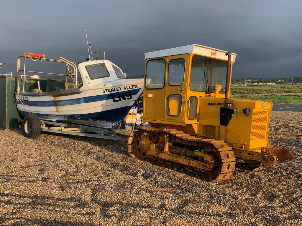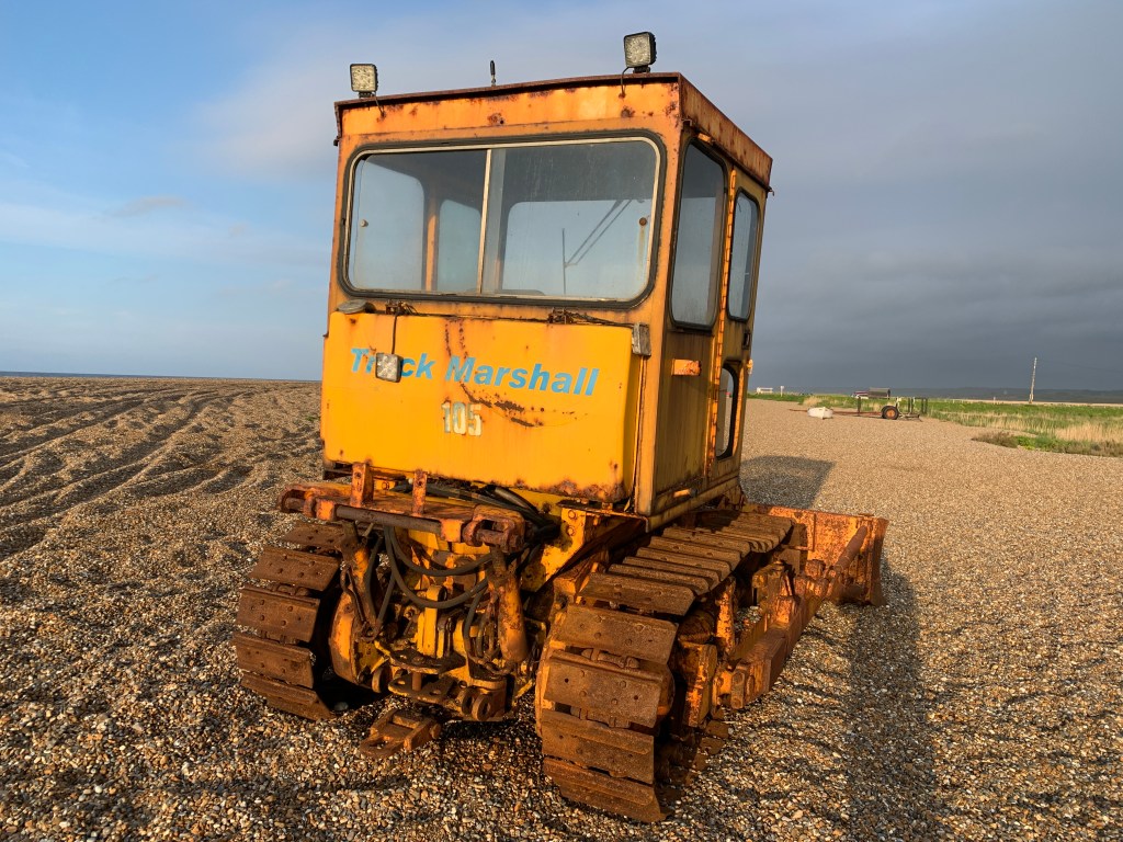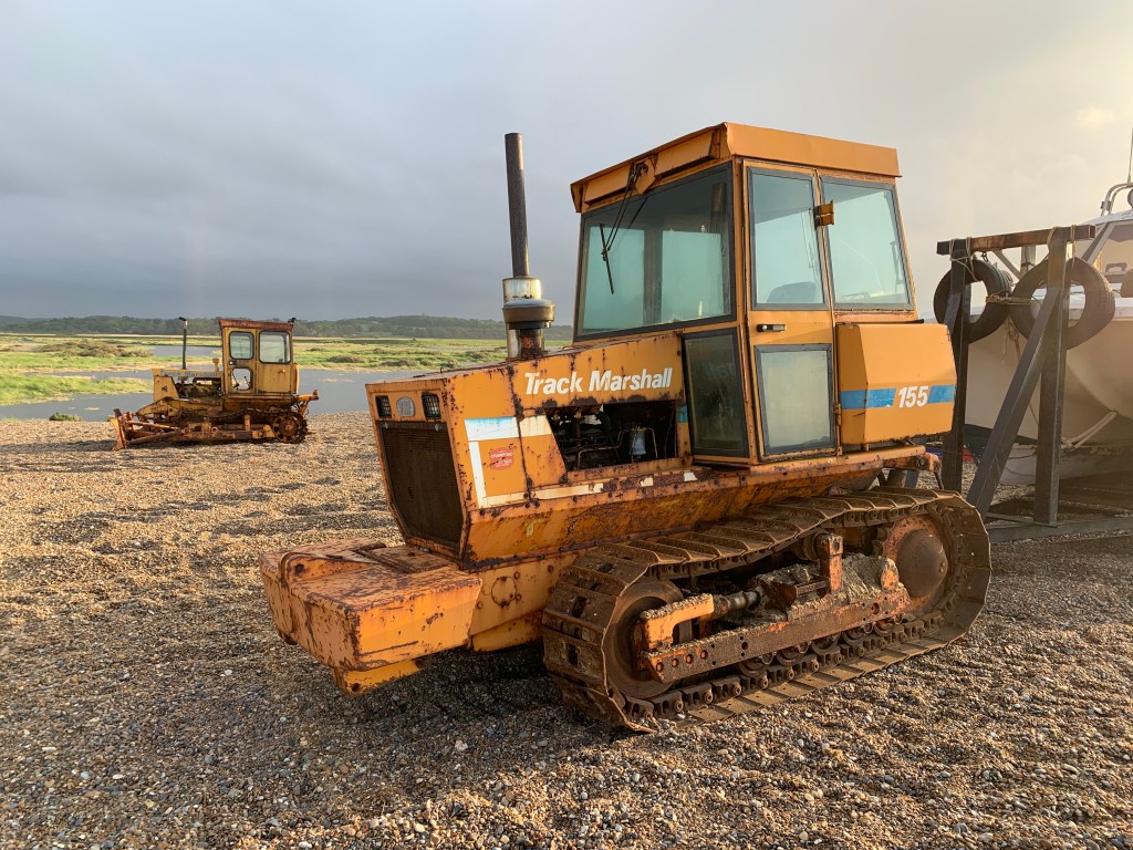 After a couple of days the weather became less vicious and the rain slightly abated. One evening we decided to drive out for a stroll on the beach. At Cley-next-the-Sea. I came across some old friends. This time painted yellow and between 40 and 50 years old. They were used to take and return the fishing boats from the surf. I started my career at a tractor factory in Gainsborough, Lincolnshire called Aveling Marshall in 1976. This was then part of British Leyland Special Products a group which included manufacturers of armed personnel carriers, dump trucks, refrigeration units, road rollers, fork lift trucks and shovel loaders. This division I worked for made some of those products but also the crawler tractors below.