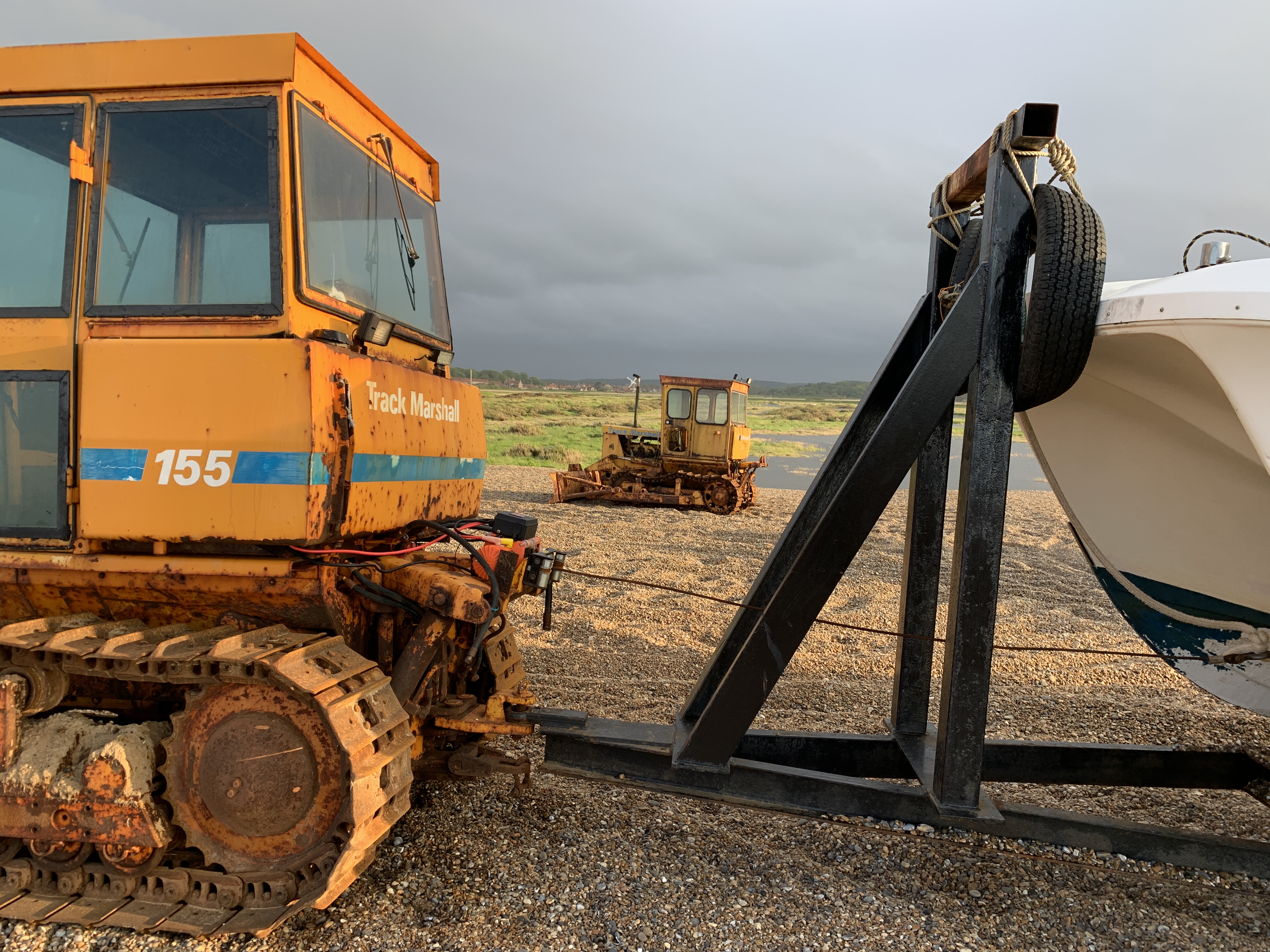 After a couple of days the weather became less vicious and the rain slightly abated. One evening we decided to drive out for a stroll on the beach. At Cley-next-the-Sea. I came across some old friends. This time painted yellow and between 40 and 50 years old. They were used to take and return the fishing boats from the surf. I started my career at a tractor factory in Gainsborough, Lincolnshire called Aveling Marshall in 1976. This was then part of British Leyland Special Products a group which included manufacturers of armed personnel carriers, dump trucks, refrigeration units, road rollers, fork lift trucks and shovel loaders. This division I worked for made some of those products but also the crawler tractors below.