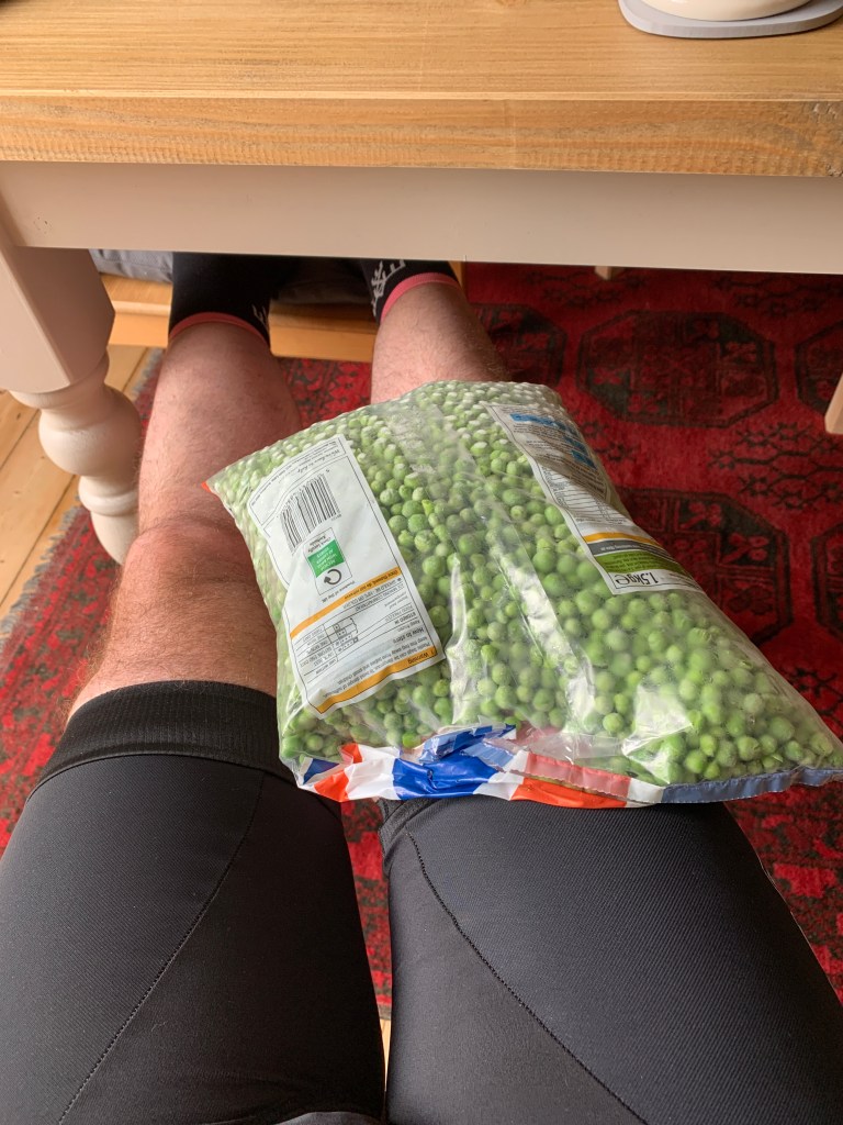 On reaching Reddish we were restored with sandwiches and soup and set about our various ‘rest day’ chores. I put some frozen peas to good use. I’m hoping an aching knee doesn’t dramatically hinder my future progress.