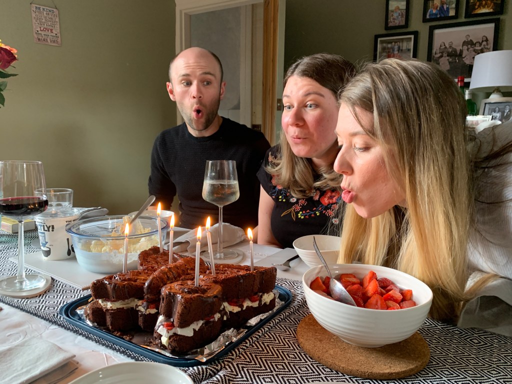 Anna had driven across the Pennines with items I wanted for the rest of the trip, they were gratefully received. Katrina and Matt’s lunch was remarkable and a few glasses of red helped us all relax. It was the youngest’s birthday next week and so, in advance a cake was presented and the candles blown, several times in fact as Peter kept relighting them!