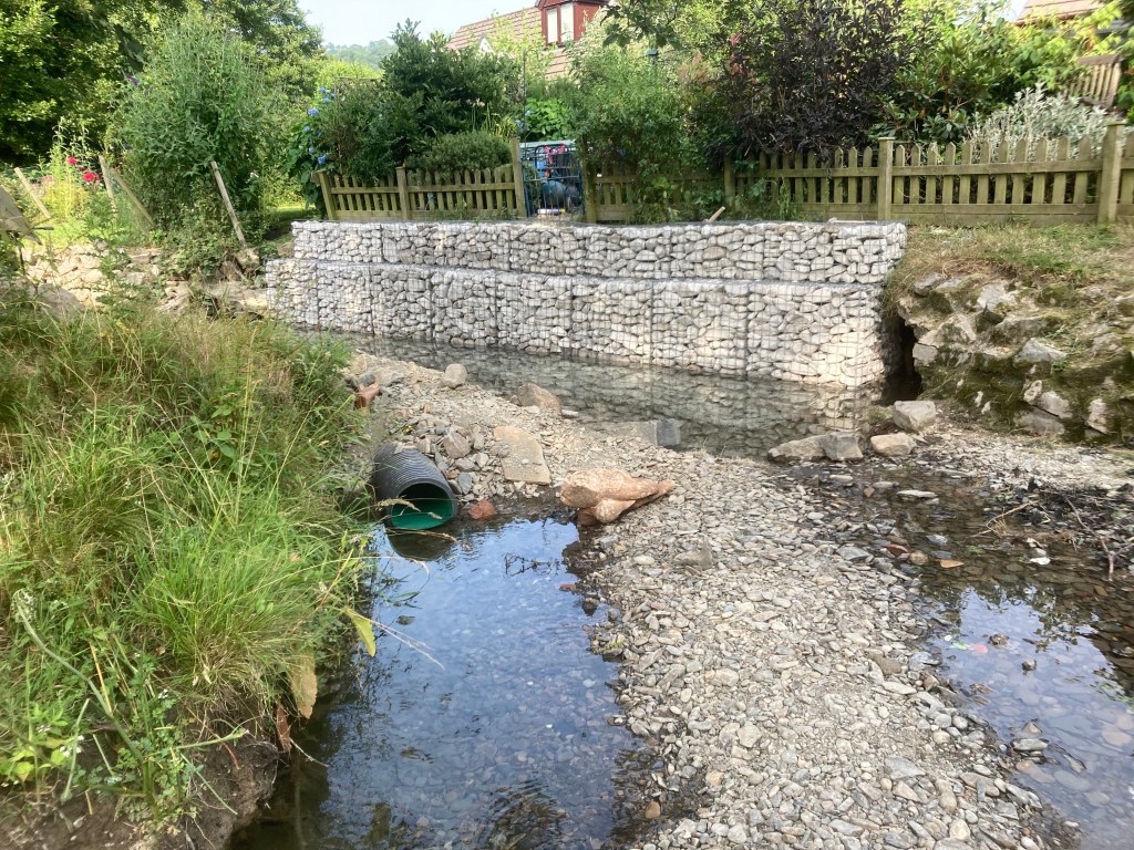 Ann-Marie, my sister, has been reinforcing the bottom of her garden. It backs onto a stream that sadly becomes a brutal rushing river when there is heavy rain on the local Welsh hills. The result is the washing away of about five feet of an already small garden. I helped with the contractor selection and costings. I rushed down on Tuesday to be on site early for discussions.
