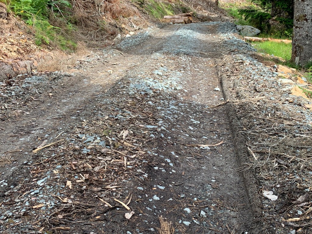 However, as he was going in the opposite direction to me on this deserted track he did have an unforeseen pleasure coming his way. On this bike destroying surface I not only got a slow puncture but also managed to dislodge two bananas freshly bought in Fort William. He may have taken this discovery as Divine intervention?