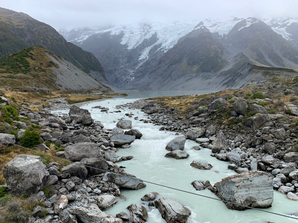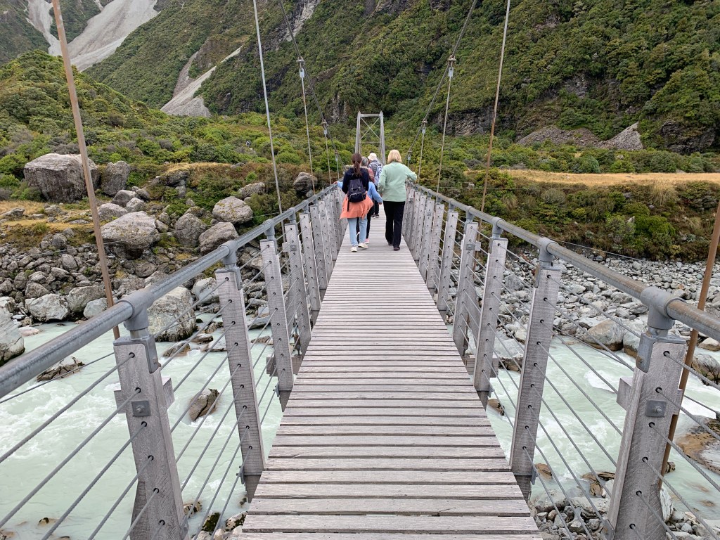 We had lunch in Twizel but afterwards continued to the end of Lake Pukaki where most of us embarked on a 6 mile hike to get closer to Mount Cook (named after the Yorkshireman).
