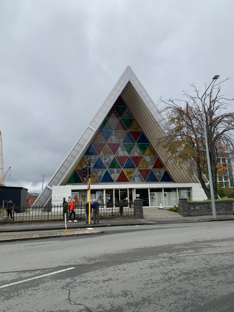In our time we spun round Christchurch dining well and seeing the town, river, memorials and cathedrals. The original cathedral was damaged in the earthquake and that’s being rebuilt but won’t be finished until 2027. In the interim they’ve built a transitional one. This uses shipping containers and cardboard.