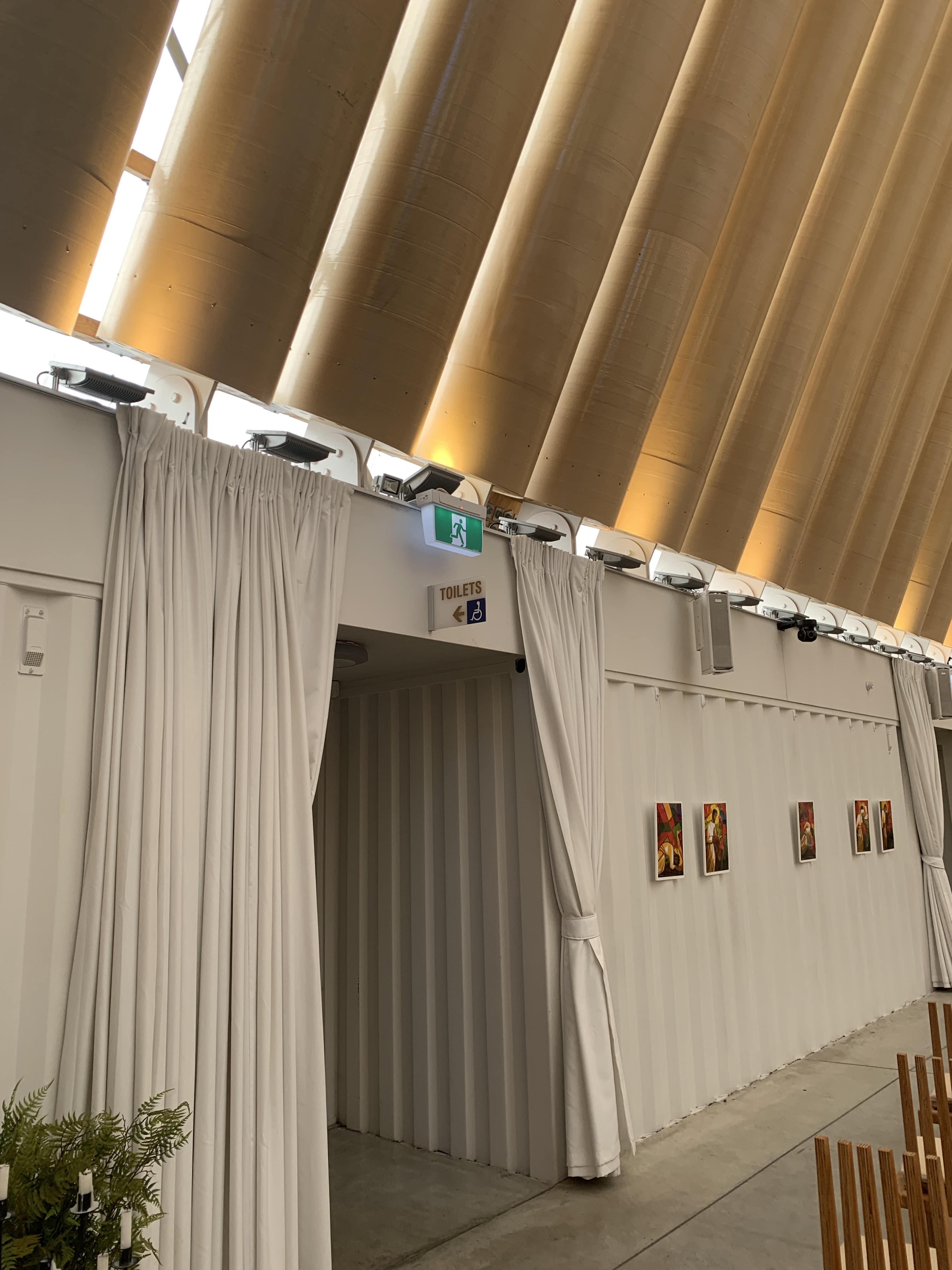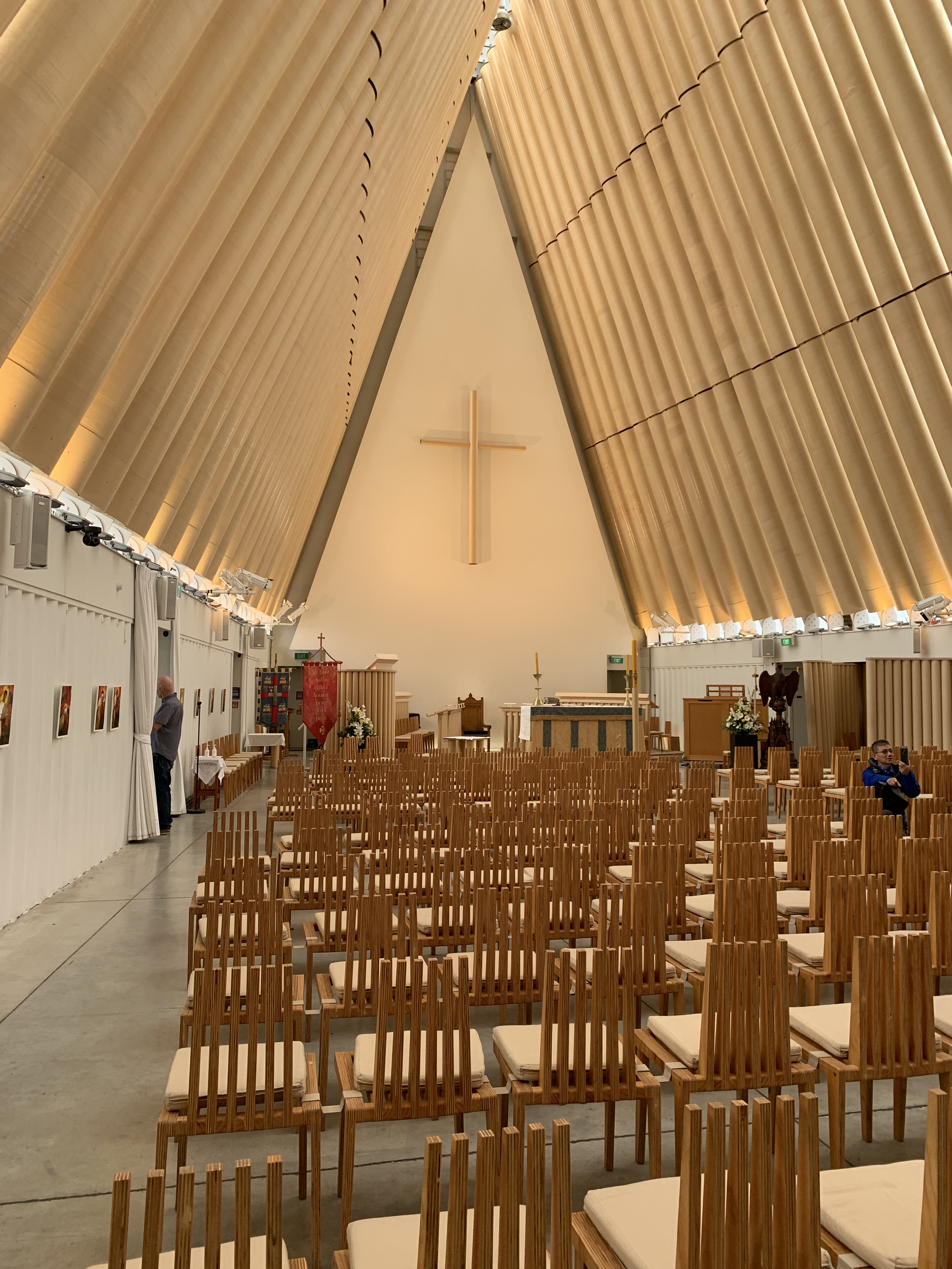 In our time we spun round Christchurch dining well and seeing the town, river, memorials and cathedrals. The original cathedral was damaged in the earthquake and that’s being rebuilt but won’t be finished until 2027. In the interim they’ve built a transitional one. This uses shipping containers and cardboard.