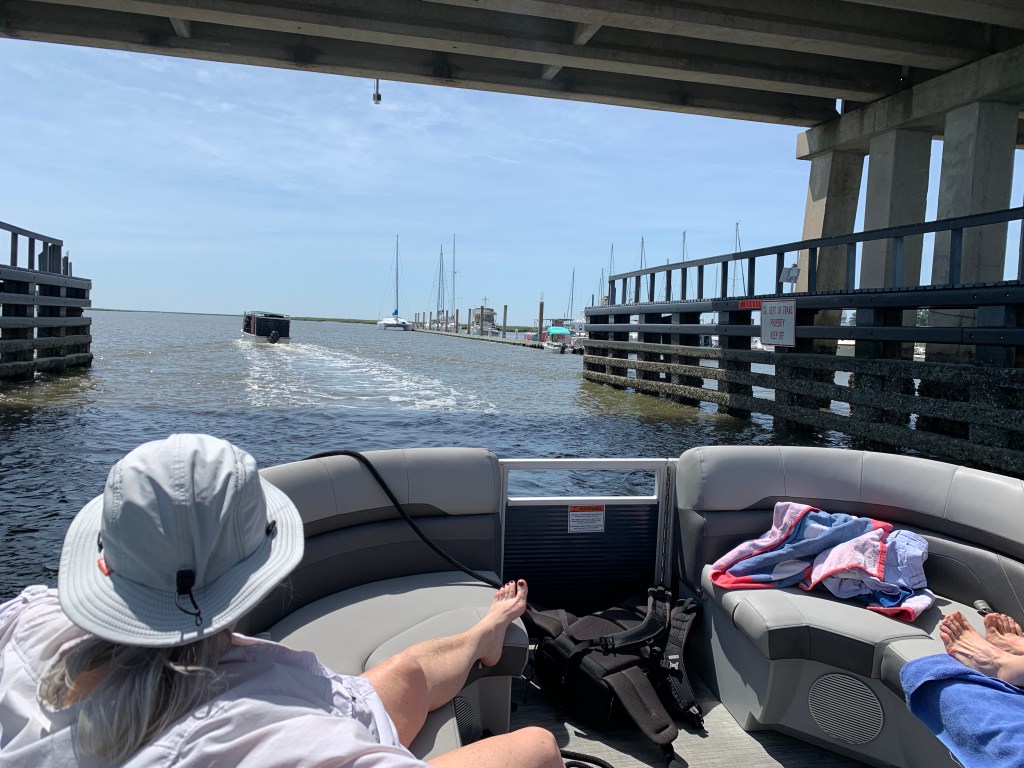 The weather continued to hot and very sunny and we had a grand time with some family neighbours out and about on a pontoon in a sail to Little Tybee island.