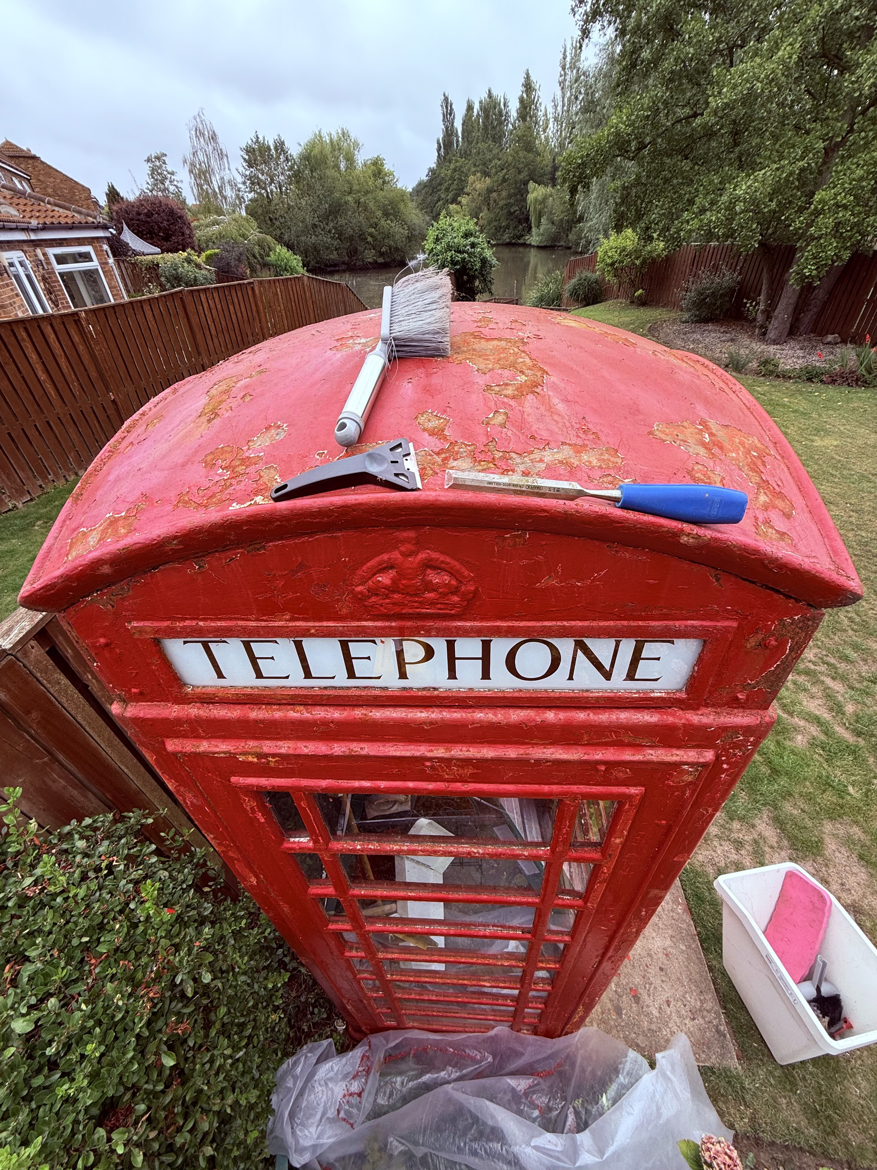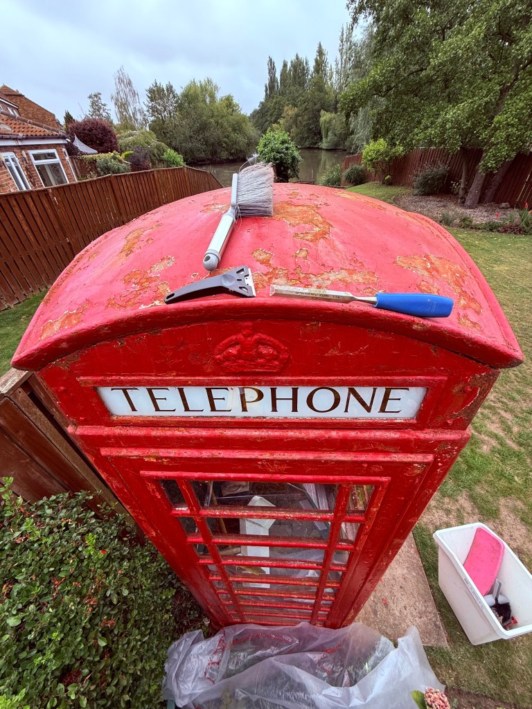 Barratt, the house builder, put telephone boxes in a couple of houses’ gardens on the estate. Periodically it needs painting. Not a quick or easy job. Fortunately the weather just about held for me to get it completed.