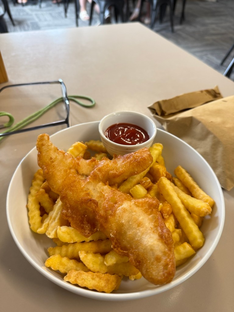 I found the campsite replete with restaurant and checked in. I had been low on food in my panniers, ravenous and wading into fish and chips was wonderful.