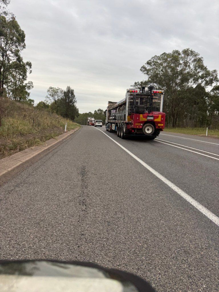 The streets were alive with utes/pick up trucks. Mining is important to Singleton and there are 17 open cast mines in the area and the scale is enormous. No doubt Australia is keeping the lights on in Shanghai. At 7am the traffic is like rush hour and the number of people in hi-viz, usually clutching a coffee from a cafe, is enormous. For me on my bike I had to be careful as workers were focussing on getting to their sites. As always with my luck the day starts with a long hill climb and they’re steep enough for large American trucks with their trailers to have to crawl past me.