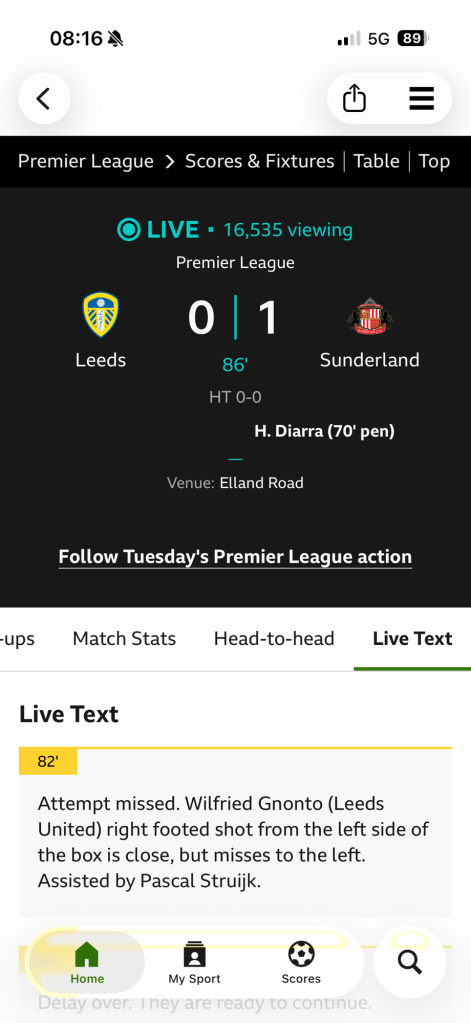 I couldn’t listen to live Premier League football live as it played out back in Blighty and so Tim and Anna kept me posted on WhatsApp but I kept looking at the BBC website. Since I’ve been away Leeds have played three games and picked up one point. My absence has sent the club into a tail spin.