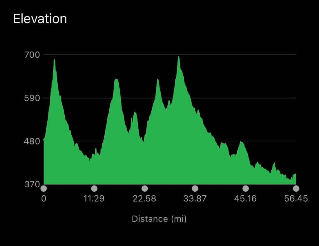 Some porridge and a coffee before the off. The ride started with a steep climb. As you can see by this elevation profile it wasn’t going to be an easy day up until the delightful long descent.